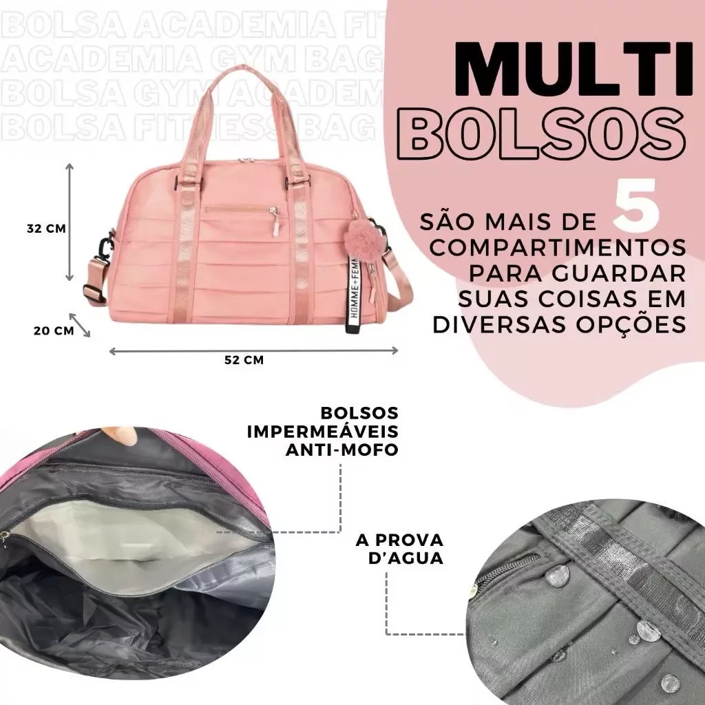 Ideal para academia, musculação, yoga, natação, corridas, camping, ciclismo, viagens curtas ou até passeios casuais, essa bolsa oferece um excelente espaço interno, com compartimentos inteligentes e organizados. Entre eles, um bolso impermeável exclusivo para roupas molhadas ou sujas, um compartimento separado para calçados e diversos bolsos com zíper que garantem segurança e praticidade.